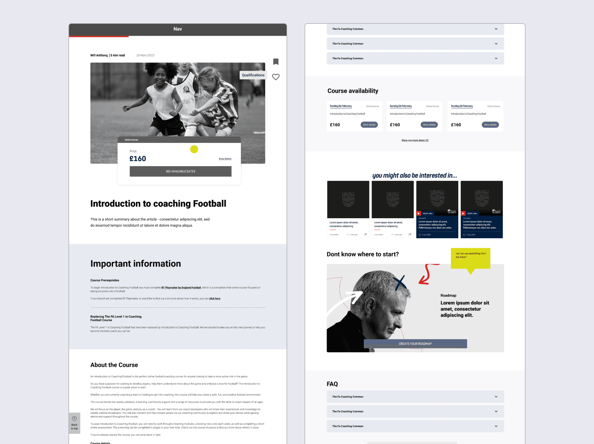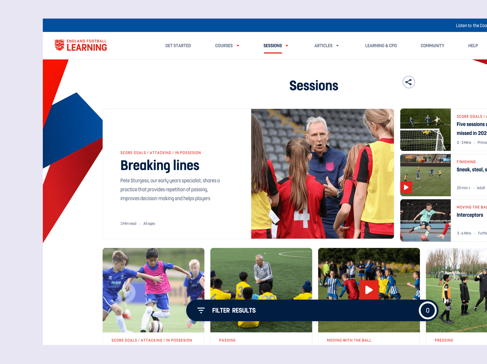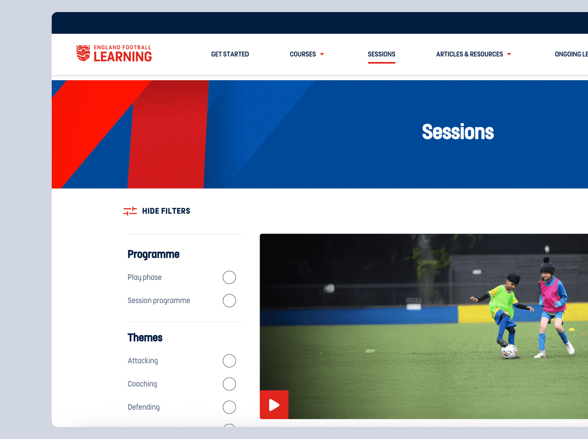 Responsibilities: Owned end-to-end UX design for English Football Learning, The FA's official education platform serving 25,000+ coaches, referees, and players nationwide. As part of a three-year engagement across multiple FA projects, I led this platform's transformation, partnering with product and engineering leadership to balance user needs with technical feasibility. Drove the complete design process—from thematic analysis and competitive research through interface design and usability testing.