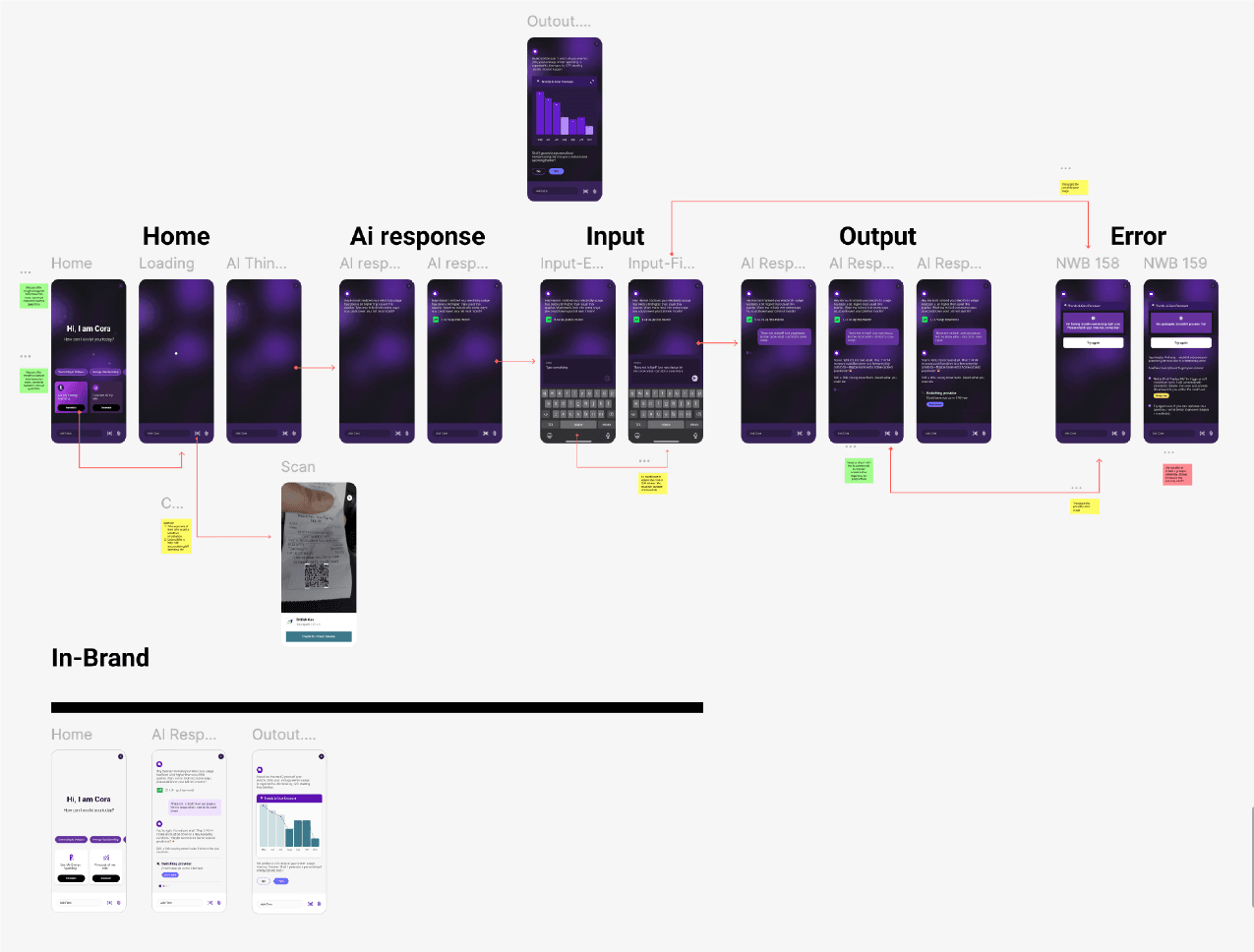 Validated the PoC through targeted usability testing, achieving an 80% approval rating from users. With a 8/10 utility score, the research confirmed that the integrated AI successfully bridged the gap between basic service and proactive financial guidance.